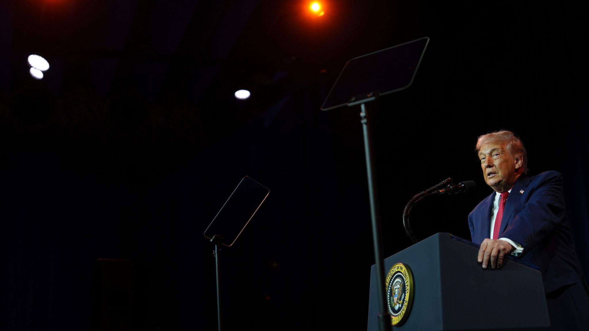 President Donald Trump speaks to House Republican lawmakers during their annual policy retreat, Tuesday, Jan. 6, 2026, in Washington. (AP Photo/Evan Vucci)
