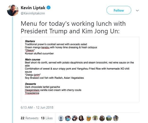 Αυτό είναι το μενού στο γεύμα εργασίας των Τραμπ και Κιμ Γιονγκ Ουν – ΦΩΤΟ – ΒΙΝΤΕΟ