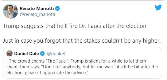 Wow — a “Fire Fauci!” chant at the Trump rally