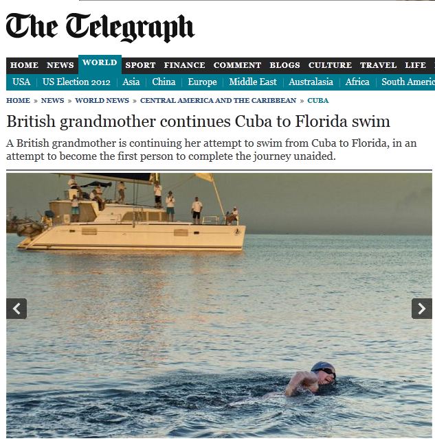 Η 49χρονη Penny Palfrey επιχειρεί να πετύχει ένα μοναδικό άθλο. Βούτηξε από την μαρίνα Havana’s Hemingway, στην Κούβα με σκοπό να κολυμπήσει ως τις ακτές της Florida στις Η.Π.Α. Η προσπάθειά της διαρκεί ήδη 48 ώρες και τα εγγόνια της δηλώνουν περήφανα για την … γιαγιά τους.