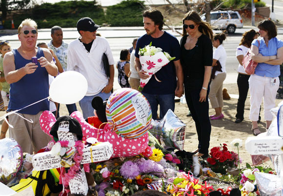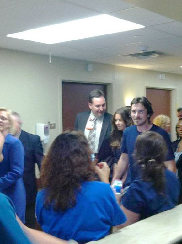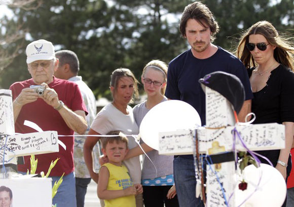 Ο Christian Bale επισκέπτηκε τους τραυματίες που αναρρώνουν στο Ιατρικό κέντρο της Αουρόρα στο Κολοράντο. Λίγο πριν είχε σταθεί με τη σύζυγό του, Sandra Blazic να αφήσει λουλούδια στο πρόχειρο μνημείο που στήθηκε έξω από το σινεμά Century 16 για τα 12 θύματα…
