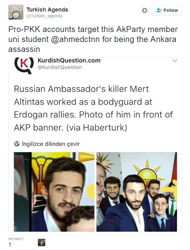 Μπροστά από τη σημαία του κόμματος του Ερντογάν είχε φωτογραφηθεί πριν από λίγο καιρό ο δολοφόνος του Ρώσου πρέσβη, ο οποίος έχει κατηγορηθεί από τις τουρκικές αρχές ως μέλος της οργάνωσης του Φετουλάχ Γκιουλέν.