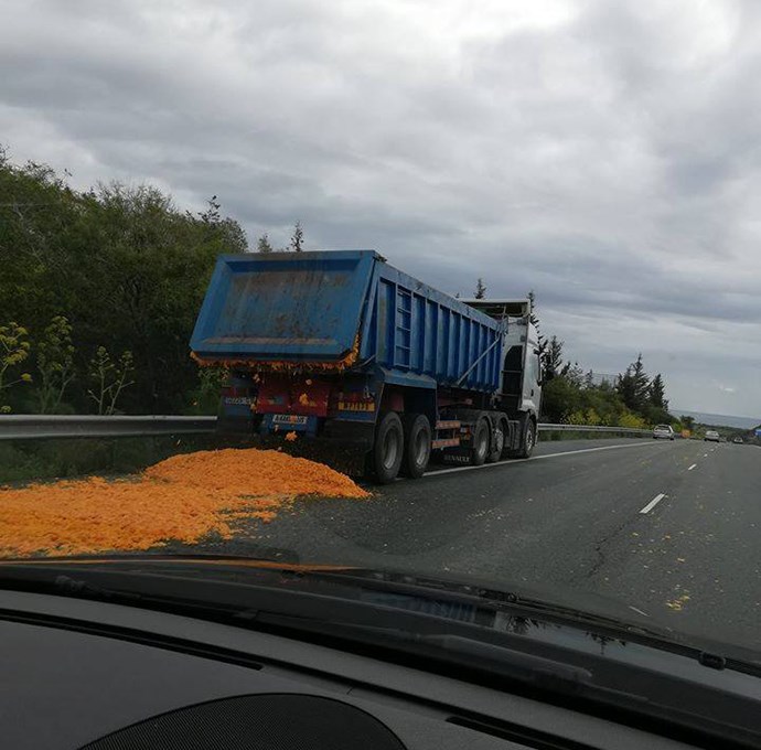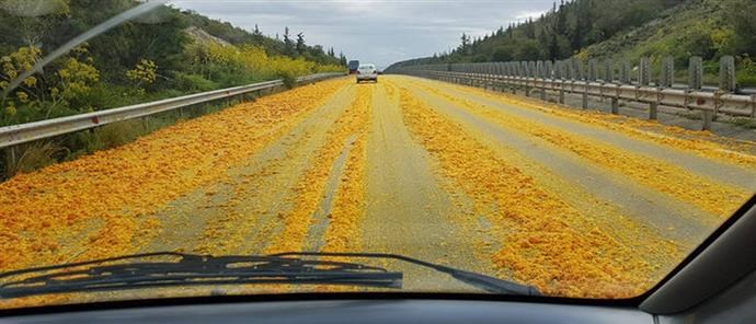 Με πορτοκάλια γέμισε ο αυτοκινητόδρομος Λεμεσού – Λευκωσίας στο ύψος εξόδου Ακτής του Κυβερνήτη, στην Κύπρο. Οι Αρχές έχουν κλείσει τον δρόμο, καθώς κρίνεται επικίνδυνος.Σύμφωνα με τις πρώτες πληροφορίες της ιστοσελίδα offsite.com.cy, οι μεγάλες ποσότητες των φρούτων έπεσαν από διερχόμενο φορτηγό.