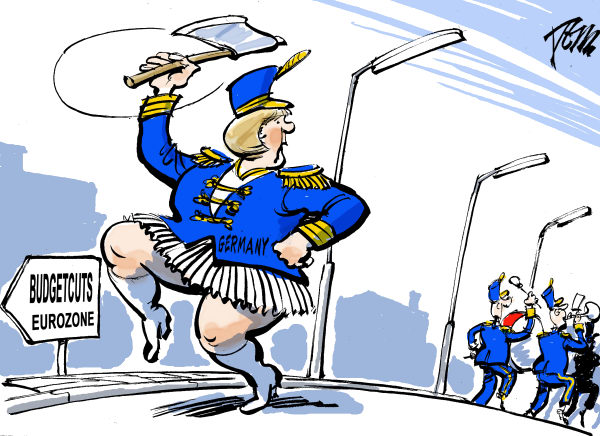 Η Άνγκελα Μέρκελ φαίνεται πως πρόκειται να μείνει μόνη της παρέα με την πολιτική λιτότητας, που τόσο πολύ προσπαθεί να εφαρμόσει σε όλες τις χώρες της Ευρώπης. Όλη την αλήθεια που στοιχειώνει τα όνειρα της Μέρκελ παρουσιάσαν τα Cagle Cartoons και Oberpfalznetz…