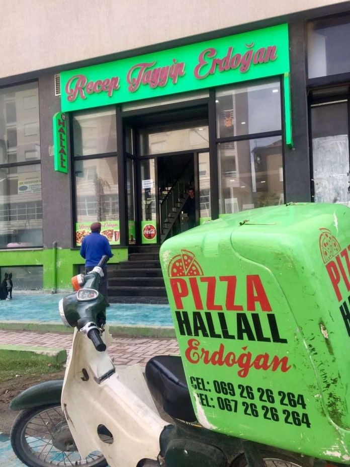 Το όνομα του Προέδρου της Τουρκίας Ρετζέπ Ταγίπ Ερντογάν δόθηκε σε πιτσαρία στην Αλβανία.Μία δημοσιογράφος από το Κόσοβο ανέβασε στον προσωπικό της λογαριασμό στο Twitter την φωτογραφία της πιτσαρίας με την επωνυμία «Ρετζέπ Ταγίπ Ερντογάν», την οποία και συνόδευσε με το σχόλιο «το όνομα Ερντογάν έχει μεγάλη “εμπορική αξία” στην Αλβανία».Ωστόσο στην ανάρτηση της δεν αναφέρει σε ποια περιοχή της Αλβανίας βρίσκεται η συγκεκριμένη πιτσαρία.