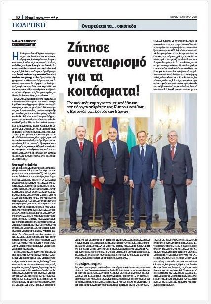 Όλα αυτά αποτελούν κυριαρχικά δικαιώματα που ασκεί η Κυπριακή Δημοκρατία και αυτό είναι κάτι που ο Ερντογάν θέλει να αλλάξει, σε πλήρη αρμονία με τους Τουρκοκυπρίους, όπως δείχνουν οι δηλώσεις τους. Δεν είναι διόλου τυχαίο πως λίγες ημέρες πριν από τη συνάντηση του Τούρκου Προέδρου με την ηγεσία της Ε.Ε. ο «υπουργός Εξωτερικών» του ψευδοκράτους Κουντρέτ Οζερσάι επισκέφθηκε την Άγκυρα και πήγε στο τουρκικό υπουργείο Εξωτερικών για να βοηθήσει στη σύνταξη του σχετικού αιτήματος στη «λίστα» του Τούρκου Προέδρου.