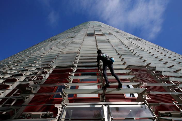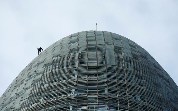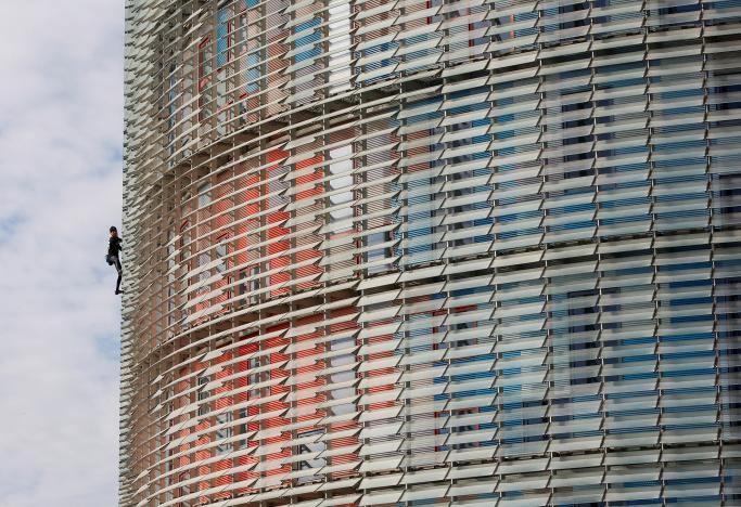 Ο Γάλλος “Σπάιντερμαν”, Αλέν Ρομπέρ, σκαρφάλωσε σε έναν από τους ψηλότερους ουρανοξύστες στη Βαρκελώνη, χωρίς τον κατάλληλο εξοπλισμό ασφαλείας.