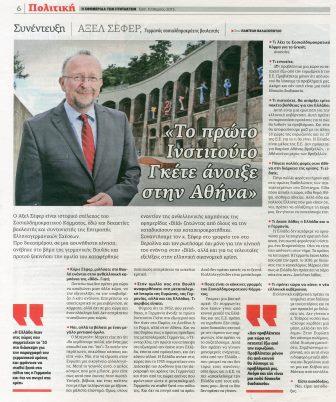 Διαβάστε τη συνέντευξη που παραχώρησε στην Εφημερίδα των Συντακτών: