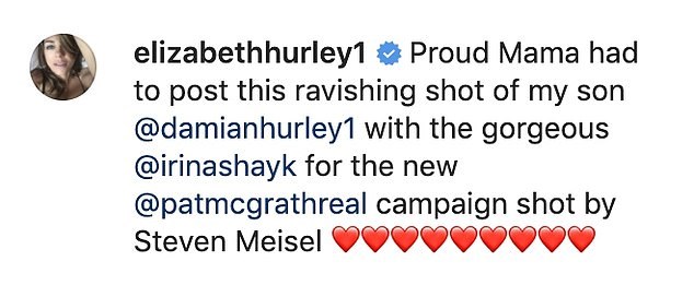 “Υπερήφανη μαμά. Έπρεπε να δημοσιεύσω αυτό το καταπληκτικό πλάνο του γιου μου με την υπέροχη Ιρίνα Σάικ” έγραψε στη λεζάντα η Ελίζαμπεθ Χάρλεϊ.