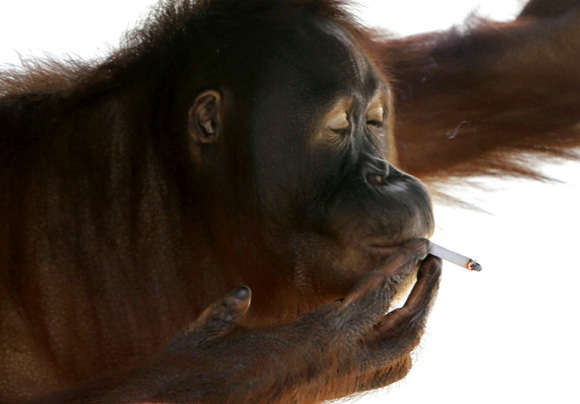 Tori, ο 15χρονος Ουρακοτάγκος,καπνίζει στο κλουβί του στον Ζωολογικό Κήπο Satwa Taru Jurug στο Solo, στην Indonesia,6η Ιουλίου 2012.