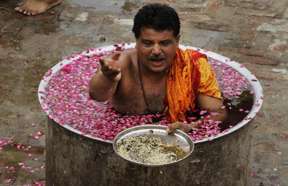Χιντού ιερέας προσεύεχεται για τους μουσώνες, Ahmadabad, India, 1η Ιουλίου, 2012