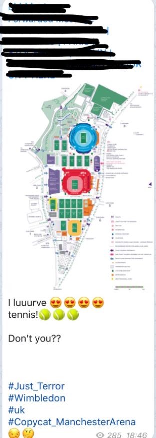 Συναγερμός έχει σημάνει στις βρετανικές αρχές μετά τον εντοπισμό ανεπίσημου λογαριασμού του Ισλαμικού Κράτους στο Telegram, όπου καλεί μέλη του που δρουν ως «μοναχικοί λύκοι», να επιτεθούν στο τουρνουά τένις του Γουίμπλεντον.