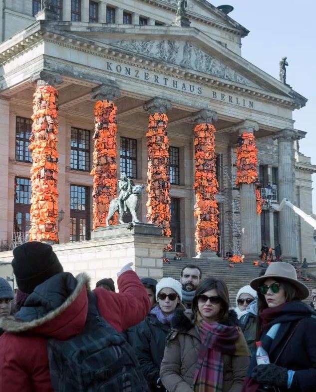 Κεντρικά κτίρια του Βερολίνου, όπως το περίφημο συναυλιακό μέγαρο, Konzerthaus «πλημμύρισαν» από 14.000 πορτοκαλί σωσίβια.