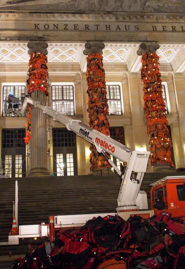 Ο Weiwei, αφού συγκέντρωσε χιλιάδες από τα σωσίβια που αφήνουν στις παραλίες του νησιού οι πρόσφυγες και οι μετανάστες , στη συνέχεια γέμισε στην κυριολεξία τη γερμανική πρωτεύουσα με αυτά.