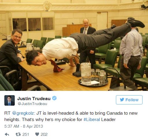Μια ξεχωριστή φωτογραφία ανήρτησε στο προσωπικό του λογαριασμό στο Twitter, το 2013 o Καναδός Πρωθυπουργός, Τζάστιν Τρουντό .