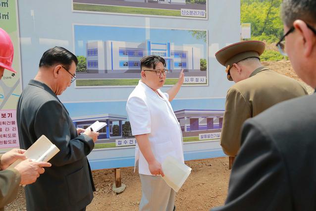 Στις φωτογραφίες που έδωσε στη δημοσιότητα το καθεστώς, ο Κιμ Γιονγκ Ουν φαίνεται να δίνει οδηγίες στους υπεύθυνους του εργοταξίου.