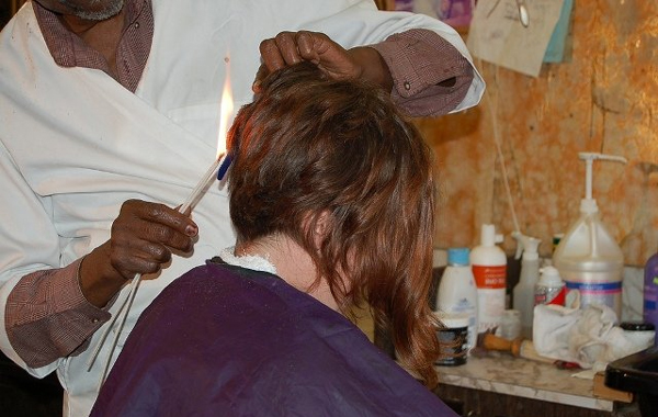 ”Κάνω πολλά χρόνια αυτή τη δουλειά και η φωτιά έχει πολύ καλά αποτελέσματα, τόσο στα κοντά, όσο και στα πιο μακριά μαλλιά. Μπορώ να χειριστώ τη φλόγα με μεγάλη επιδεξιότητα και η εμπειρία μου αρκεί για να πετύχω αυτό που θέλω”, λέει ο κομμωτής.