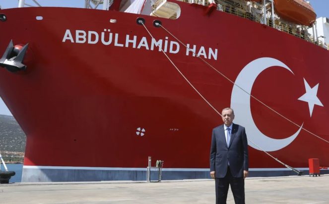 «Τι κάναμε χθες, προχθές; Κατευοδώσαμε το πλοίο γεώτρησης Αμπντουλχαμίτ Χαν από το λιμάνι Τασουτζού της Μερσίνας. Αλλά η Ελλάδα ενοχλήθηκε πολύ. “Ε, τι κάνει αυτός ο Ερντογάν;” είπε. Ο Ερντογάν δεν κάνει τίποτα. Κάνει τη δουλειά του. Και αυτό το πλοίο είναι το πρώτο στον κόσμο. Είναι ένα γεωτρύπανο», δήλωσε ο Ρετζέπ Ταγίπ Ερντογάν.