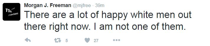 Ο Φρίμαν, με διαδοχικά tweet δεν μπορεί να πιστέψει τις εξελίξεις. «Όλη μέρα εμμονικά αναζητούσα το που θα παρακολουθήσω την ομιλία νίκης της Χίλαρι. Ποτέ δεν ήταν “Αν”. Υποτίμησα τη χώρα μας. Νιώθω χαμένος», έγραψε χαρακτηριστικά και συνέχισε: