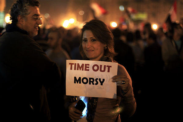 Οι διαδηλωτές διαμαρτύρονται για το διάταγμα αυτό το οποίο παραχωρεί διευρυμένες εξουσίες στον Μόρσι.