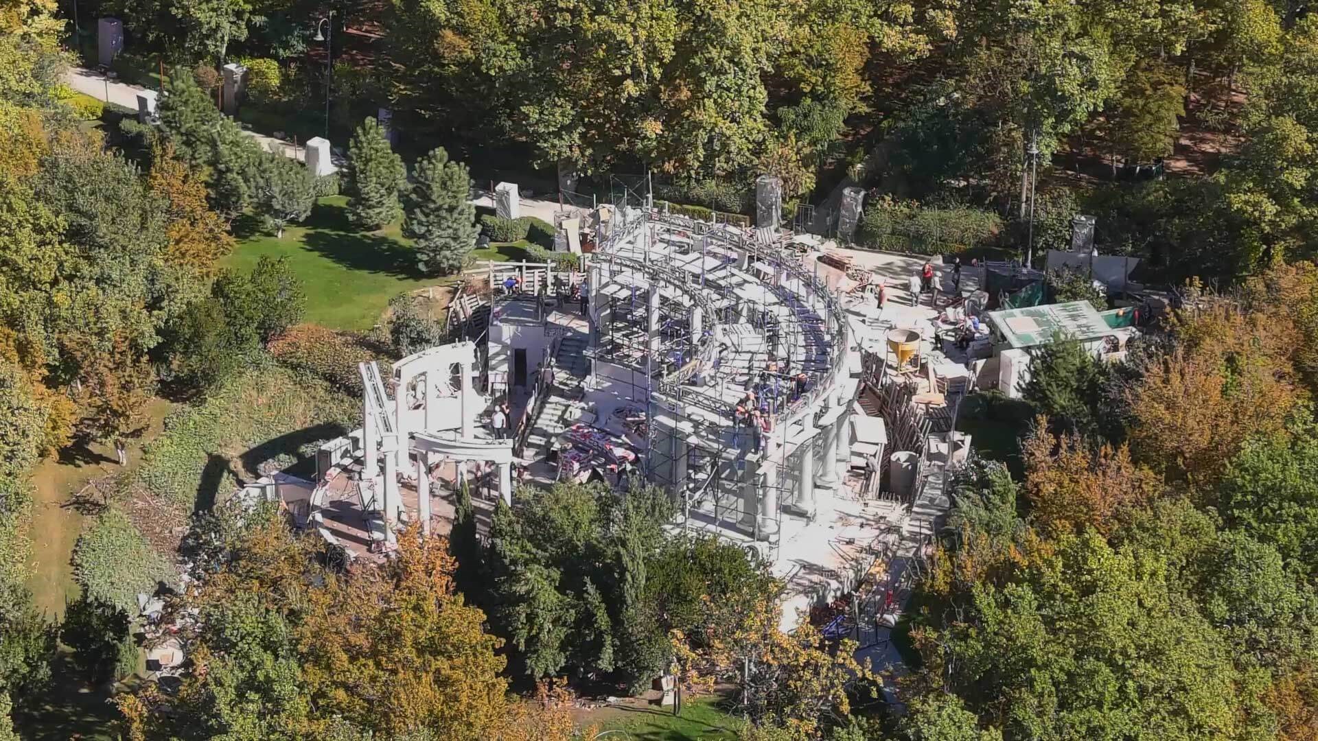 Φωτογραφίες αέρος απεικονίζουν τις εργασίες ανακαίνισης από ψηλά με οικοδομικά υλικά να βρίσκονται παντού ενώ τα παράθυρα είναι σφραγισμένα. Πριν από έξι χρόνια δορυφορικές φωτογραφίες έδειχναν ότι το παλάτι ήταν πανέτοιμο, αλλά υπήρξαν πολλές ζημιές και παράλληλα με τις επιδιορθώσεις έγινε και επέκταση. Τοποθετήθηκε ακόμη και παγοδρόμιο χόκεϊ. Εντυπωσιακή είναι η εκκλησία στην έκταση. Υπάρχει θερμοκήπιο 2,500 τετρ. μέτρων με 40 κηπουρούς να εργάζονται εκεί και να ελέγχουν διαρκώς τα φυτά. Καταγράφεται μία γέφυρα 80 μέτρων. Η έπαυλη διαθέτει και εντυπωσιακό θέατρο το οποίο διαρκώς ανακαινίζεται. Για να κατέβει κάποιος στην παραλία περνά μέσα από ειδικό τούνελ το οποίο, όπως αναφέρει η ομάδα του Ναβάλνι, το κατασκεύασε η ίδια ομάδα που κατασκεύασε το μετρό και πρόκειται για μοναδικό σχέδιο που προσφέρει εύκολη πρόσβαση στη θάλασσα αλλά και καταφύγιο σε περίπτωση πολέμου ή επίθεσης από τους κατοίκους του Γκελέντζικ. Γύρω από την έκταση, μία περιοχή 9.000 στρεμμάτων ανήκει στην Ομοσπονδιακή Υπηρεσία Ασφάλειας της Ρωσίας ώστε να προστατεύεται με κάθε τρόπο ο πρόεδρος και οι υψηλοί καλεσμένοι του.