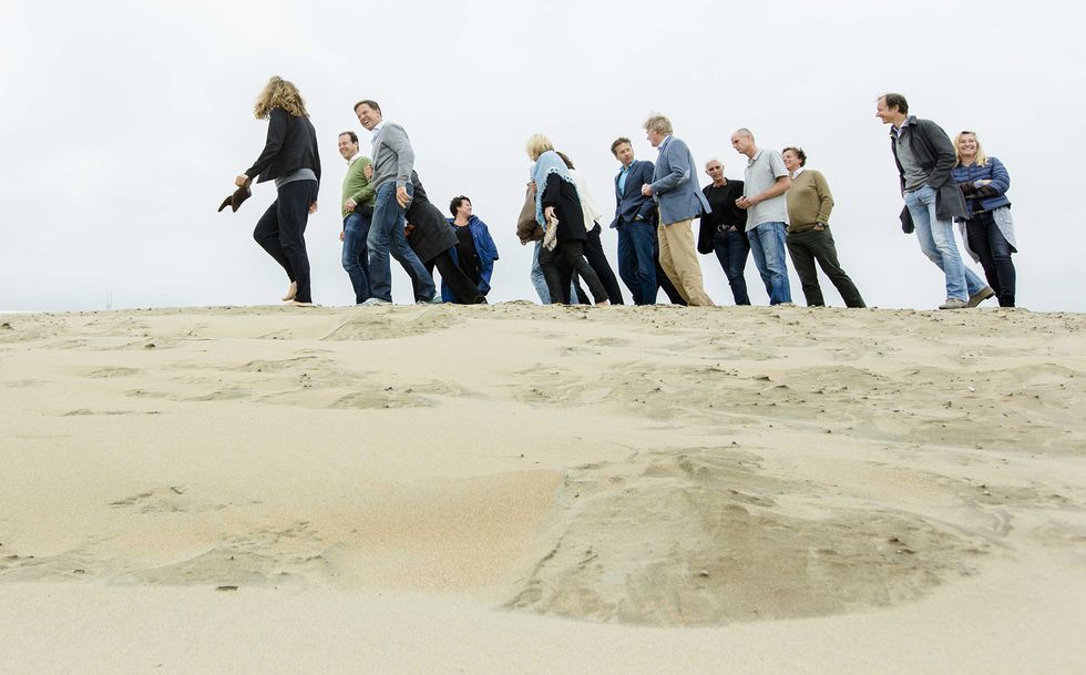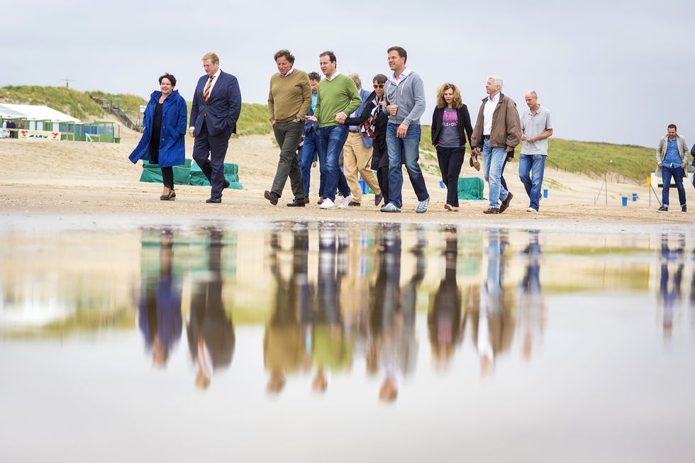 Όλοι οι υπουργοί και οι υφυπουργοί της κυβέρνησης του Μαρκ Ρούτε, άλλοι με κοστούμια και άλλοι ντυμένοι πιο κάζουαλ, αφού συζήτησαν τα θέματα της ημερήσιας διάταξης στο υπουργικό συμβούλιο, βρέθηκαν στην παραλία «Wassenaar».