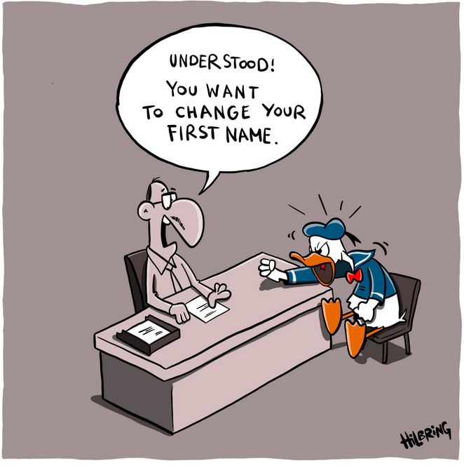 «Κατάλαβα. Θέλεις να αλλάξεις το όνομά σου», απαντάει ο υπάλληλος στον Ντόναλντ Ντακ.