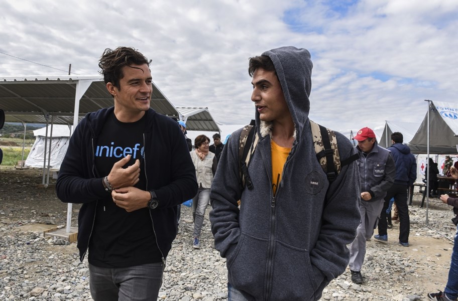 Ο Βρετανός ηθοποιός Ορλάντο Μπλουμ, πρωταγωνιστής μεγάλων κινηματογραφικών επιτυχιών και Πρεσβευτής Καλής Θέλησης της UNICEF, επισκέφθηκε σήμερα ένα κέντρο υποδοχής προσφύγων στη Γευγελή, στα σύνορα της ΠΓΔΜ με την Ελλάδα.
