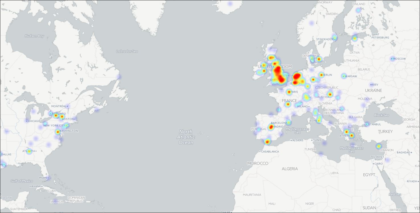 Αυτός είναι ο χάρτης που απεικονίζει τις περιοχές σε ολόκληρη την υφήλιο, που οι χρήστες του twitter έχουν χρησιμοποιήσει περισσότερο το hashtag #grexit.