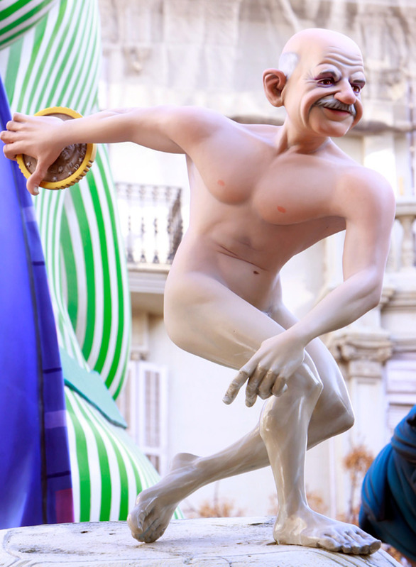 Σε μια εμφάνιση έκπληξη και χωρίς ρούχα!!! Στο καρναβάλι της Βαλένθια ο πρώην πρωθυπουργός της χώρας. Την ευθύνη της “πρόσκλησης” -και του γεγονότος- φέρουν οι διοργανωτές του φεστιβάλ Las Fallas που στο τέλος έκαψαν όλα τα ομοιώματα ,μαζί και τον δισκοβόλο Παπανδρέου