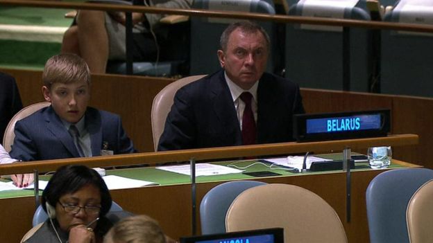 Ο γιος του Alexander Lukashenko μάλιστα παρακολούθησε τις ομιλίες και των άλλων ηγετών στην αίθουσα του ΟΗΕ καθώς και την ομιλία του πατέρα του. Ντυμένος, όπως οι μεγάλοι, με κοστούμι και γραβάτα ο μικρός έκλεψε τις εντυπώσεις.