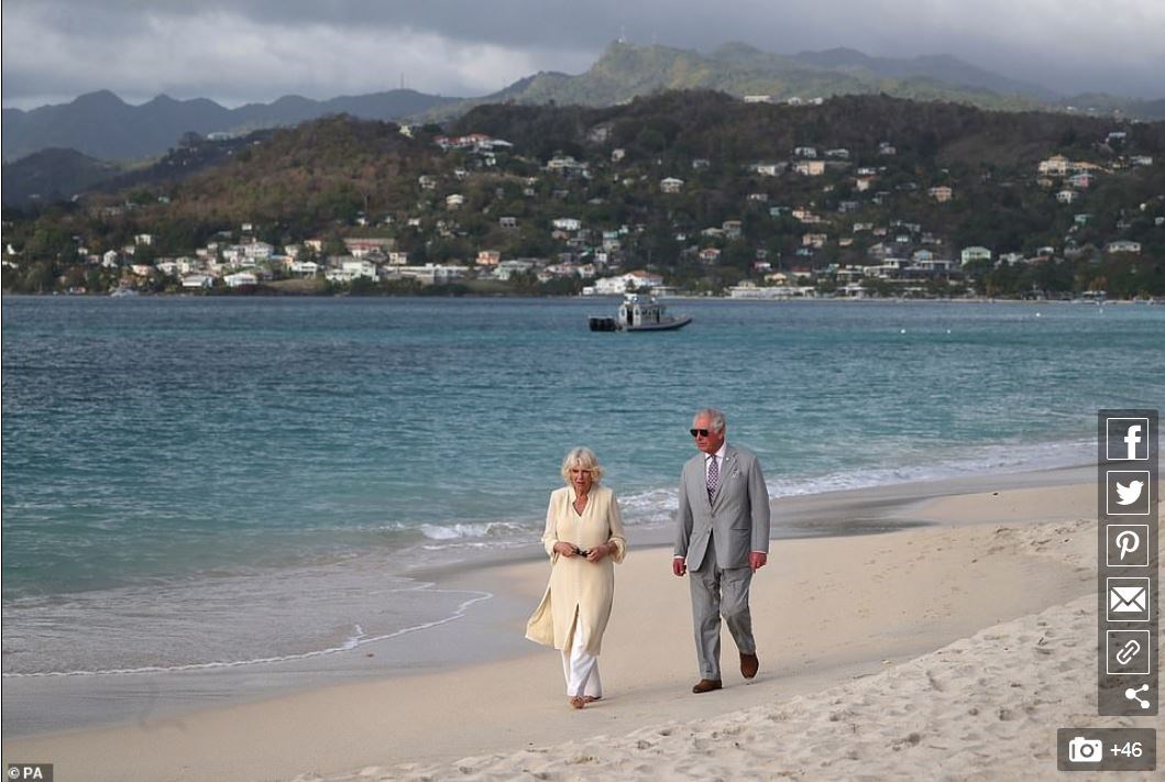 Το νησί Γρενάδα της Καραϊβικής επισκέφθηκε ο πρίγκιπας Κάρoλος με την σύντροφο του, Καμίλα.Το ζευγάρι, αφού ολοκλήρωσε το πρόγραμμα των επισκέψεων στα αξιοθέατα και των συναντήσεων με τους τοπικούς άρχοντες, αποφάσισε να κάνει μία βόλτα σε μία εκπληκτική παραλία με χρυσή άμμο.Όπως ήταν αναμενόμενο, πλήθος φωτογράφων βρέθηκαν στο σημείο για να απαθανατίσουν το στιγμιότυπο.Στις φωτογραφίες που έκαναν το γύρο του κόσμου, φαίνεται η Καμίλα να περπατάει στην άμμο ξυπόλυτη, ενώ ο πρίγκιπας Κάρολος, ακολούθησε πιστά το πρωτόκολλο και δεν έβγαλε τα πανάκριβα σουέντ παπούτσια του, γεγονός που σχολιάστηκε στα βρετανικά μέσα.