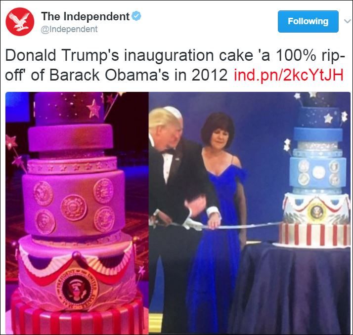 Κάποιοι χρήστες του Twitter σχολίασαν πως ενδεχομένως την έφτιαξε η ίδια ομάδα που δούλευε για εκείνον, όταν έφτιαξε την τούρτα του Ομπάμα πριν από 4 χρόνια.