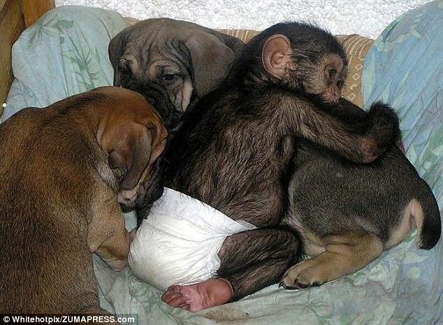 Είναι γνωστό ότι τα ζώα δεν κάνουν διακρίσεις στην αγάπη. Τρανό παράδειγμα, το συγκεκριμένο σκυλί, το οποίο φροντίζει τον ορφανό χομπατζή, σα να είναι ένα από τα κουταβάκια του.