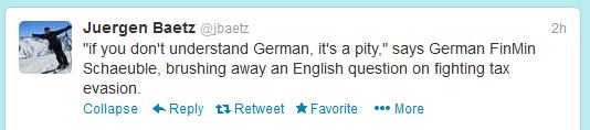 “Εάν δεν καταλαβαίνετε γερμανικά, είναι κρίμα..”, φέρεται να απάντησε ο Βόλφγκανγκ Σόιμπλε σε δημοσιογράφο που του έκανε μία ερώτηση στα αγγλικά σχετικά με την καταπολέμηση της φοροδιαφυγής.
