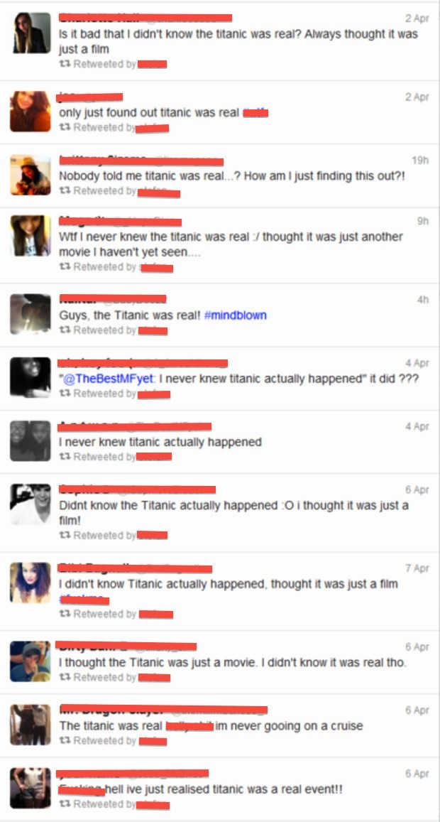 Ρίξτε μια ματιά στα tweets κάποιων χρηστών του Twitter, οι οποίοι εξεπλάγησαν όταν έμαθαν πως η ιστορία του Τιτανικού ήταν αληθινή…