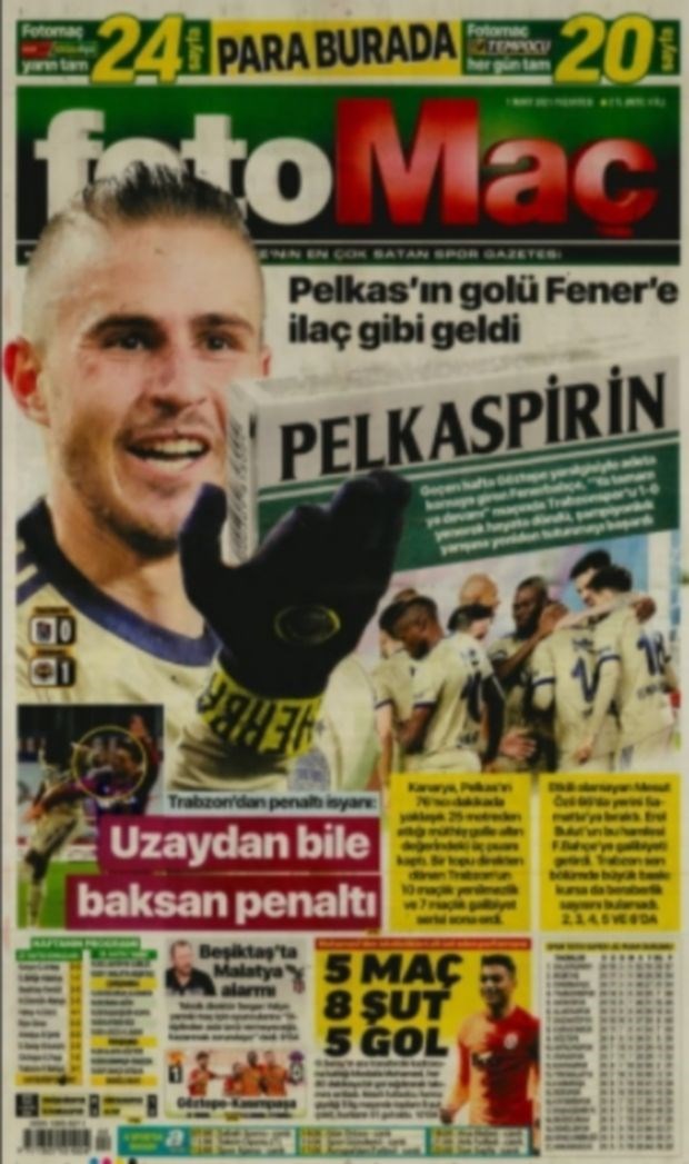 Η Hurriyet στο πρωτοσέλιδο της αναφέρει “Συρτάκι στην Τραπεζούντα”, ενώ στο ίδιο μήκος κύματος ήταν και η αναφορά της Aksam Spor που έκανε λόγο για: “Το συρτάκι της Φενέρμπαχτσε”. Η fotoMac “υποκλίνεται” στον Έλληνα μεσοεπιθετικό με έναν ευρηματικό τίτλο “Πελκασπιρίνη”.