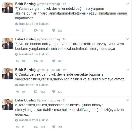 Δείτε τα tweets του υπουργού Δικαιοσύνης της Τουρκίας: