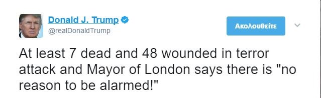 «Τουλάχιστον 7 νεκροί και 48 τραυματίες σε τρομοκρατική επίθεση και ο δήμαρχος του Λονδίνου λέει πως ‘δεν υπάρχει λόγος ανησυχίας!'”.