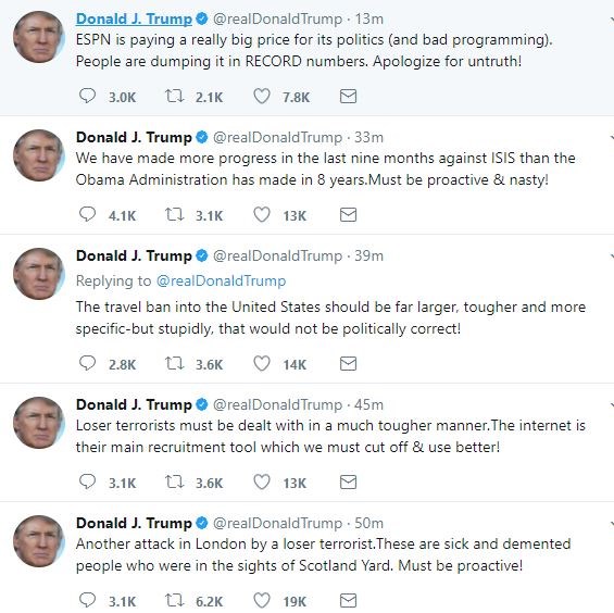Το τρομοκρατικό χτύπημα στο Λονδίνο καταδίκασε ο Πρόεδρος των ΗΠΑ, Ντόναλντ Τραμπ, και κάλεσε τις αρχές να λάβουν περισσότερο “δραστικά” μέτρα, όπως η καλύτερη αστυνόμευση της χρήσης του Ίντερνετ από τρομοκρατικές οργανώσεις.