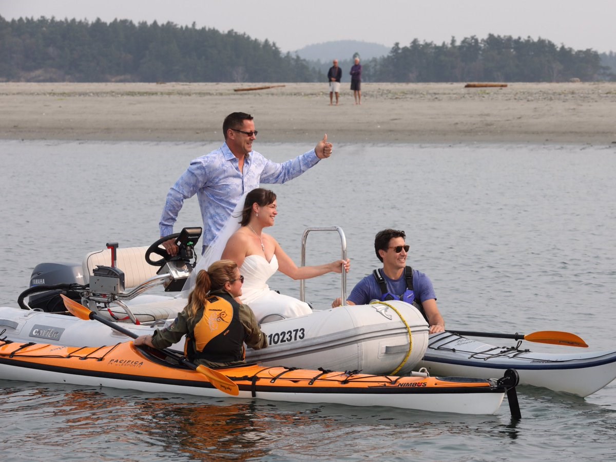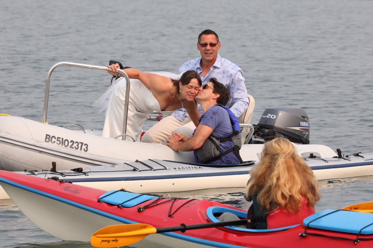 Φαίνεται ότι την κίνηση αυτή ζήλεψε ο Καναδός πρωθυπουργός Τζάστιν Τριντό και αποφάσισε να «καταστρέψει» την φωτογράφιση ενός ζευγαριού πλευρίζοντας με το κανό του το σκάφος στο οποίο επέβαιναν οι νεόνυμφοι.