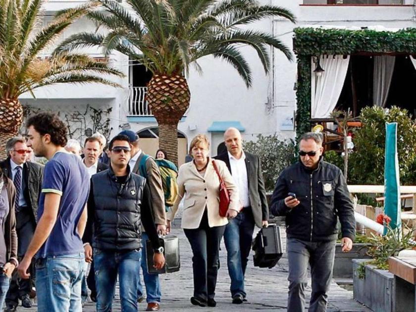 Η Γερμανίδα Καγκελάριος Angela Merkel και ο σύζυγός της Joachim Sauer επέλεξαν για ακόμη μια φορά το γραφικό νησάκι Ίσκια στον κόλπο της Νάπολι για τις διακοπές τους. Στις φωτογραφίες απεικονίζεται η Μέρκελ με τον σύζυγό της με casual εμφάνιση ενώ “σε κάθε τους κίνηση συνοδεύονται από σωματοφύλακες” διευκρινίζει η Bild, γι’ αυτό και “το να τραβήξουμε τις φωτογραφίες ήταν ένα εξαιρετικά δύσκολο έργο” σημειώνει η εφημερίδα.