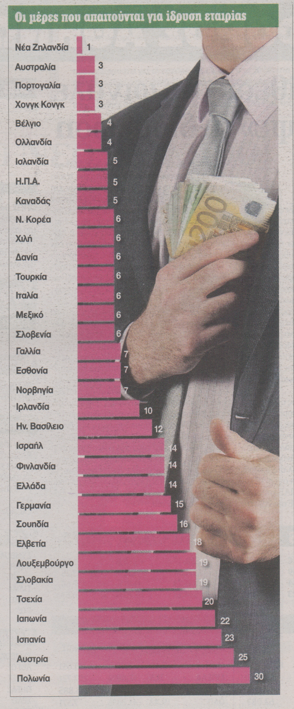Δείτε τον πίνακα με τις ημέρες που απαιτούνται για ίδρυση εταιρείας ανά χώρα.