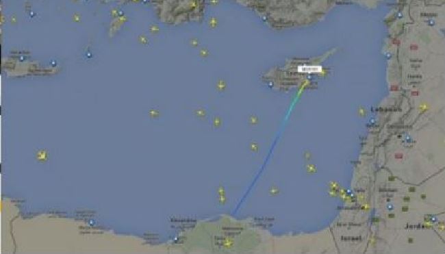 Δείτε τον χάρτη με το δρομολόγιο του αιγυπτιακού Airbus από το Κάιρο στη Λάρνακα.