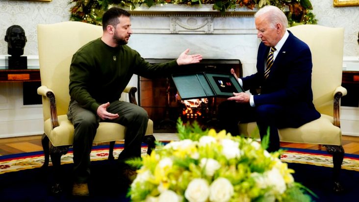 Ένα στρατιωτικό μετάλλιο απένειμε ο πρόεδρος της Ουκρανίας Βολοντίμιρ Ζελένσκι στον Αμερικανό ομόλογό του Τζο Μπάιντεν, ως ένδειξη ευγνωμοσύνης για την πολύτιμη στρατιωτική βοήθεια των ΗΠΑ στην πατρίδα του.