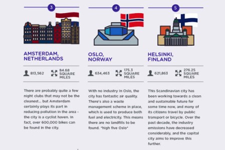 Η ιστοσελίδα Hassle.com κατάρτισε ένα infographic το οποίο περιλαμβάνει τις 28 πόλεις που διακρίθηκαν για τις περιβαλλοντικές τους επιδόσεις.