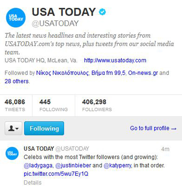 Την απάντηση έδωσε προ ολίγου το USA Today. Με -τι άλλο;- ένα tweet.