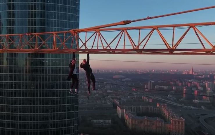 Τη συγκεκριμένη θεωρία επαληθεύουν με περίτρανο τρόπο δύο θαρραλέοι άνδρες από τη Ρωσία, οι οποίοι επιχειρούν «αναρρίχηση» σε έναν γερανό, στην πόλη της Μόσχας, χωρίς να διαθέτουν τον απαραίτητο εξοπλισμό για την ασφάλειά τους.