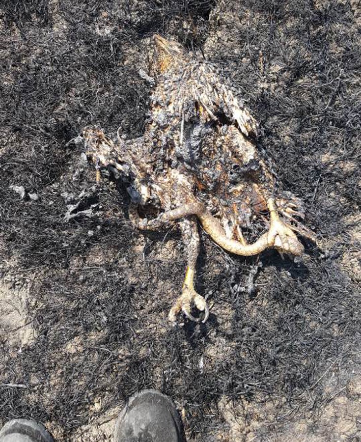 Το γεράκι αναζητούσε τροφή και επιτέθηκε στο φίδι το οποίο στη συνέχεια κρατούσε με σκοπό να το πάει στη φωλιά του. Τότε “προσγειώθηκε” σε ένα καλώδιο της επιχείρησης ηλεκτρισμού της πολιτείας. Όταν το φίδι άγγιξε ένα δεύτερο καλώδιο, τα δυο ζώα υπέστησαν ηλεκτροπληξία και η φωτιά ξεκίνησε πιθανότατα από τις σπίθες που προκάλεσε ο τραγικός θάνατός τους.