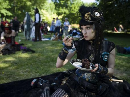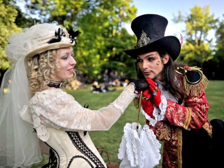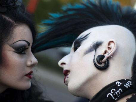“Μαύροι και κολασμένοι” οι οπαδοί του Dark Wave και Gothic μουσικού ρεύματος, που πραγματοποίησαν την καθιερωμένη τους συνάντηση στη Λειψία της Γερμανίας.Οι εκκεντρικοί Gothαδες, έχουν την ευκαιρία για λίγες ημέρες να συνανστραφούν με τους “ομοίους” τους -χωρίς να αντιμετωπίζονται “περίεργα” από τους πολίτες- καθώς αυτές οι ημέρες στη Λειψία είναι αφιερωμένες σε αυτούς. Χθες μόλις, “επέλασαν” στην πόλη, 20.000 Gothάδες, από την Ευρώπη, την Ιαπωνία, το Μεξικό, την Αργεντινή και την Αυστραλία.Η Λειψία είχε προετοιμαστεί κατάλληλα για να δεχθεί τους εκκεντρικούς επισκέπτες καθώς στήθηκαν στο κέντρο της πόλης “μαγαζιά έκτακτης ανάγκης”, με μεσαιωνικά κοστούμια και φορέματα, ανάλογα κοσμήματα, καλλυντικά -όπως λευκές πούδρες και μαύρα κραγιόν- κ.α. Μέχρι τη Δευτέρα του Αγ. Πνεύματος πρόκειται να εμφανιστούν 200 μπάντες στην ειδική σκηνή που έχει στηθεί στο κέντρο της Λειψίας, ενώ κάθε μέρα λαμβάνουν χώρα πληθώρα δρώμενων, όπως θεατρικές παραστάσεις κ.α. Δείτε τις φωτογραφίες: